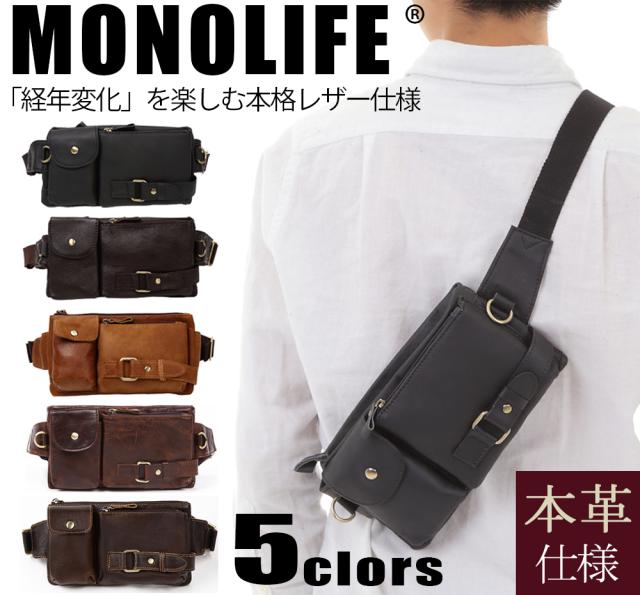 本革 レザー ウエストポーチ ウエストバッグ トラベルポーチ メンズ レディース 旅行ポーチ 全4色 monolife