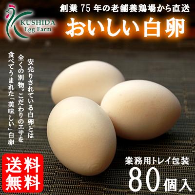 櫛田養鶏場のこだわりのエサを食べてうまれたおいしい白卵【80個入り(破卵保障10個含む)】送料無料!!