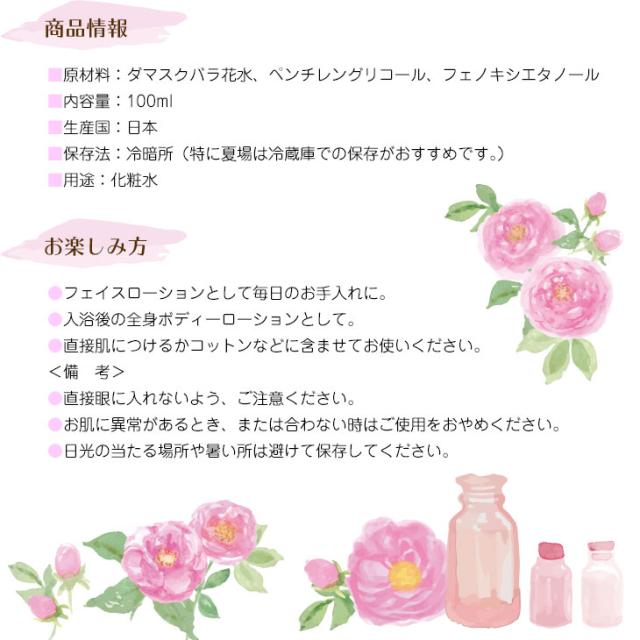原材料:ダマスクバラ花水、ペンチレングリコール、フェノキシエタノール