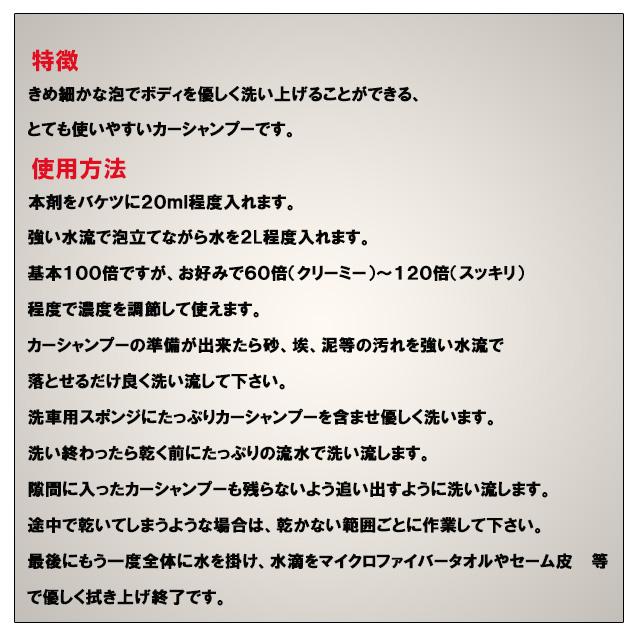 きめ細かな泡でボディを優しく洗い上げることができる、とても使いやすいカーシャンプーです。