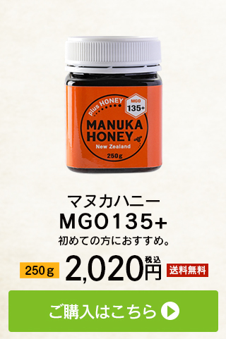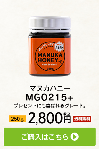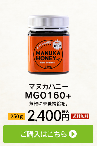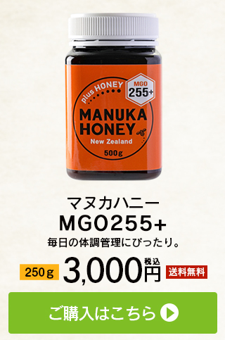 マヌカハニーは食品です。健康維持の補助としてご活用ください。医学的なご質問や効果効能についてはお答えできかねますので、気になる点がある場合は医師にご相談ください。
