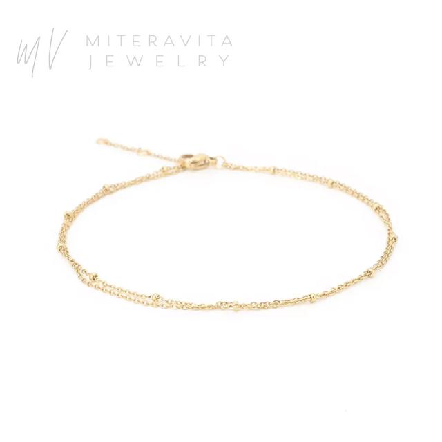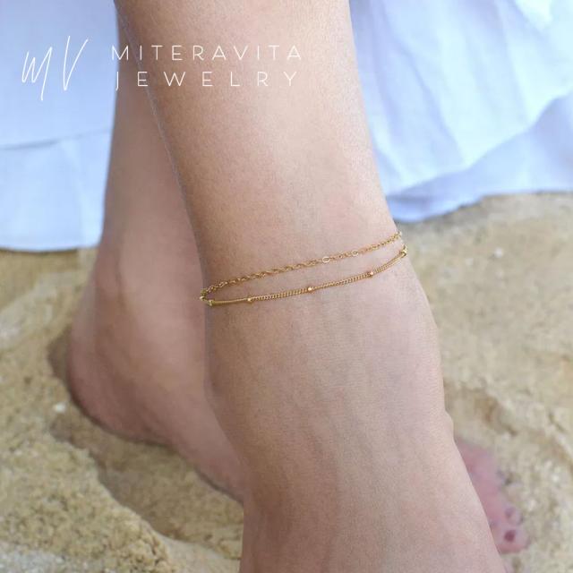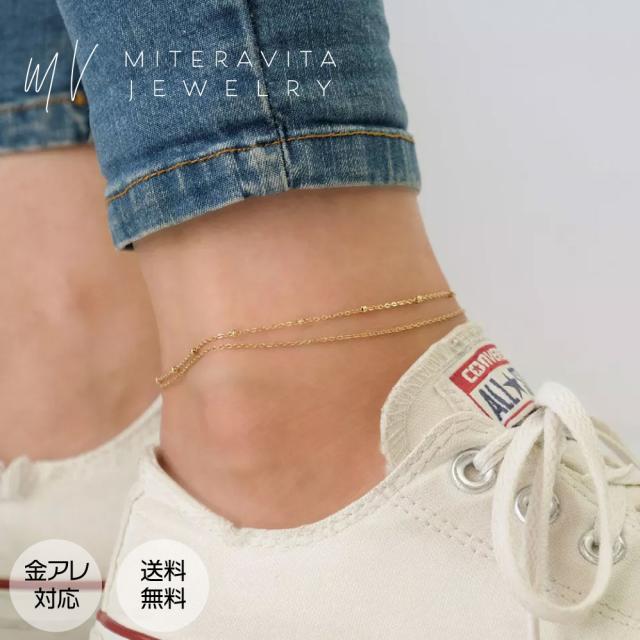 金属アレルギー対応 アンクレット サージカルステンレス アンクレット【A26】あずきチェーン & ボールチェーン 2連 レディース メンズ アンクレット 医療用ステンレス K18 ゴールド 金アレ シンプル アクセサリー miteravita ミテラヴィータ