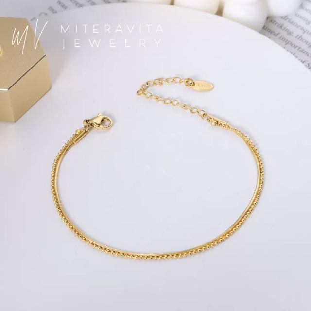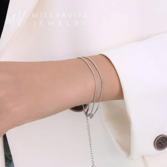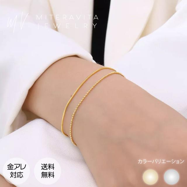 金属アレルギー対応 ブレスレット サージカルステンレス ブレスレット【B73】スネーク & ビーズ 2連チェーン つけっぱなし 変色しない 錆びない 金アレ対応 ステンレス SUS316L シンプルデザイン ゴールド シルバー