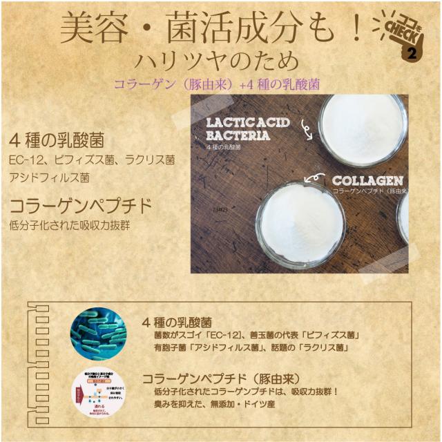 酵素パウダー、コラーゲン、乳酸菌(EC-12、フェーカリス、ラクリス)、