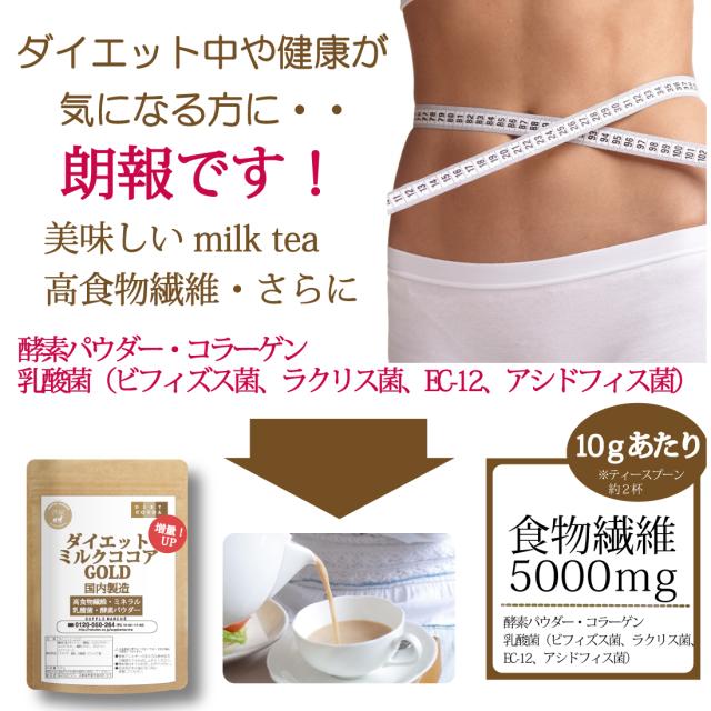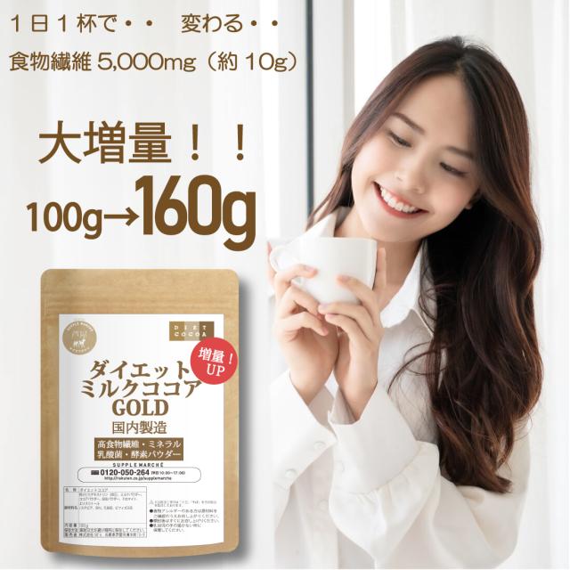 価格据置 大増量100g→160g(約16杯分)ダイエットココア ゴールド 難消化性デキストリン 乳酸菌 酵素パウダー コラーゲン 食物繊維 ダイエット 健康
