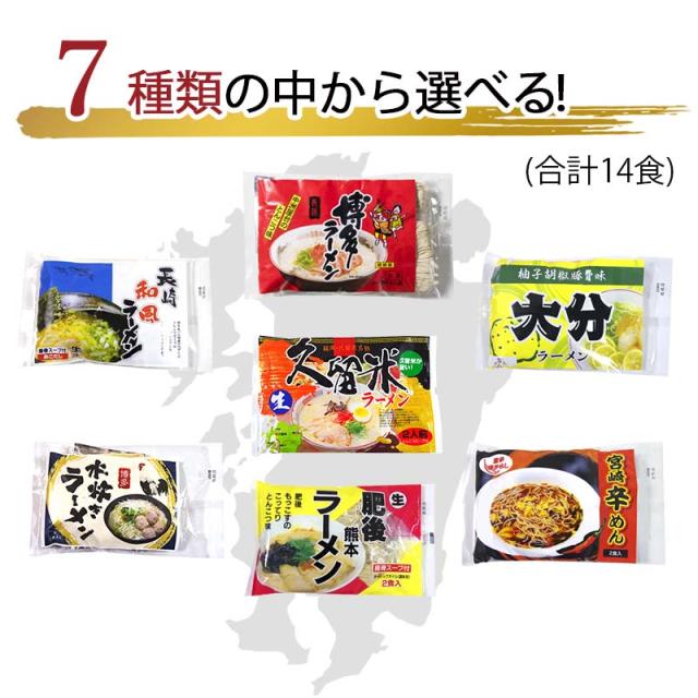 九州とんこつラーメン14食 ポイント消化 送料無料 7種類から選べる 豚骨ラーメン ギフト セット 博多ラーメン・熊本とんこつらーめん 久留米 長崎 福岡・九州 お土産 ご当地 メガ盛り