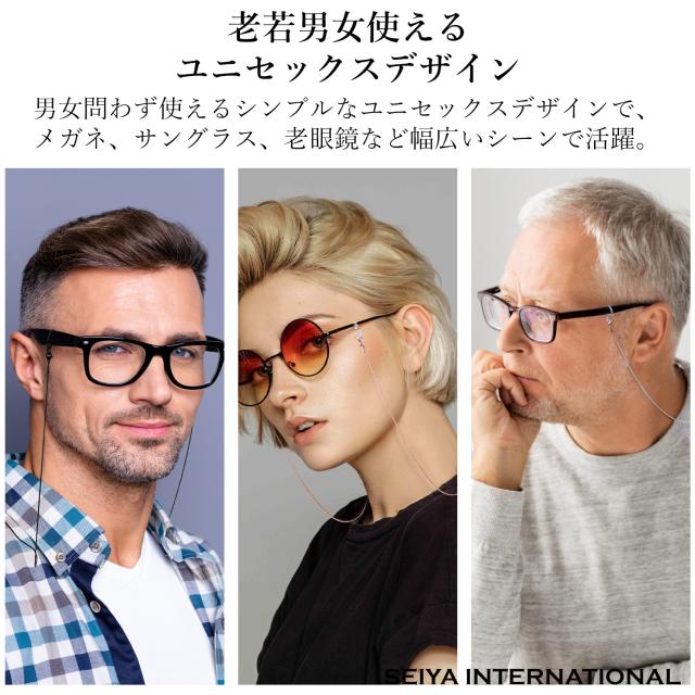 メガネを掛けたり外したりするときに便利な眼鏡チェーン。眼鏡ストラップやグラスコードなどとも呼ばれています。眼鏡を外したいときに置き場所に困ったり、どこに置いたか分からなくなったりしたことはありませんか。老眼鏡やサングラスやブルーライトカットの眼鏡などは、必要に応じて掛け外しすることも多いですが、眼鏡チェーンがあれば、大切な眼鏡を紛失するのを防ぐことができます。自宅だけでなく、オフィスや外出先など眼鏡の置き場所に困るさまざまな場面で役立ちます。メガネチェーンはおしゃれなアクセサリーとして男性・女性問わずユニセックスでご利用いただけます。