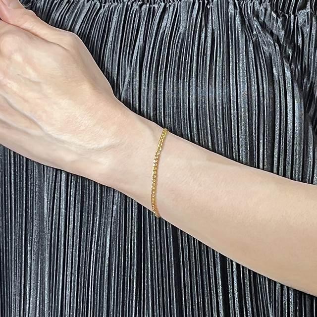 チェーン細目のブレスレットです。 錆びたり剥げたりしないので、お風呂や海水浴もつけっぱなしOK!