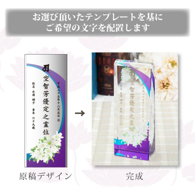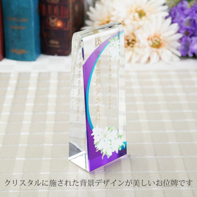 クリスタルに施された背景デザインが美しいお位牌です。 | |
