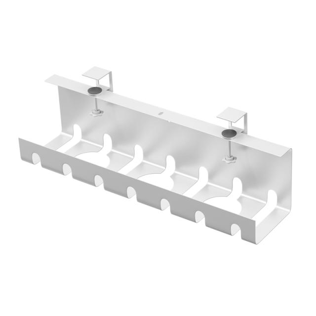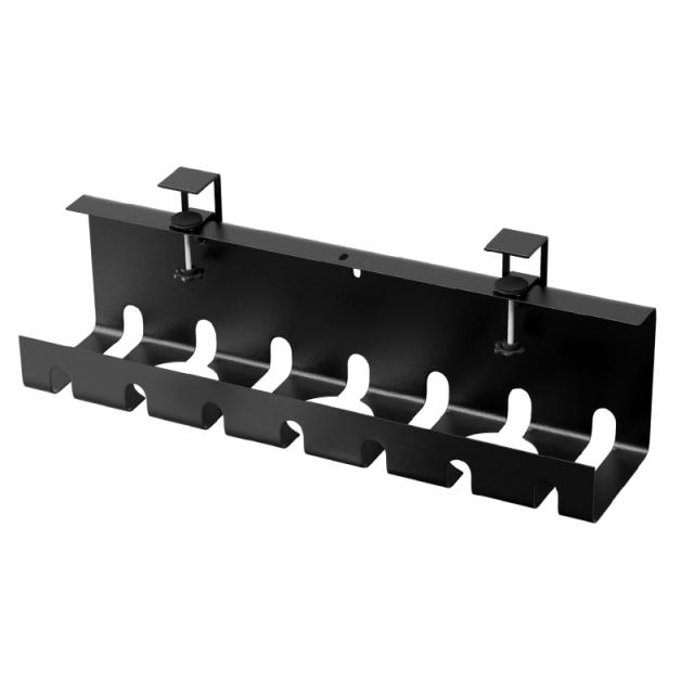 ワイヤーケーブルトレーはパンチフリーなデザイン、机の下に穴あけ不要、テーブルを傷つけずにデスクの天板を挟むことで底部のハンドルを回して簡単に設置できます。女性でもお年寄りでも簡単に設置可能です。