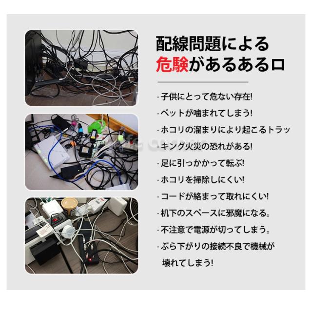 ホコリが溜まりにくい穴模様のデザイン、優れた通気性はコードの発熱はしにくいです。ケーブルを整理することで、転倒やケーブルによる事故を防止することができます。また、火災の危険性も減らすことができます。
