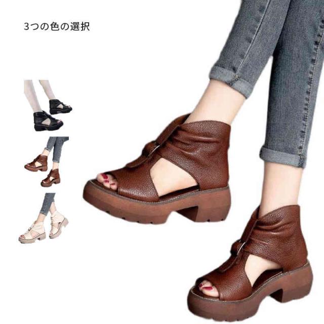 厚底サンダル ヒールサンダル 疲れにくい 厚底 ペタンコ 美脚 歩きやすい 痛くない ブーツサンダル サンダル 厚底シューズ ミドルブーツ サマーブーツ 靴 オシャレ フラットシューズ ショートブーツ コンフォート 夏用