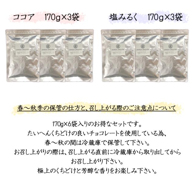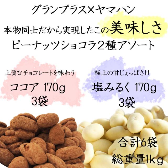 【グランプラス×ヤマハン】ベルギー産最高級チョコレートで作ったピーナッツショコラ ココア&塩みるく 170g各3袋(170g×6袋) 大入り グランプラス コラボ ゆうパケット ベルギー産クーベルチュール 千葉県産