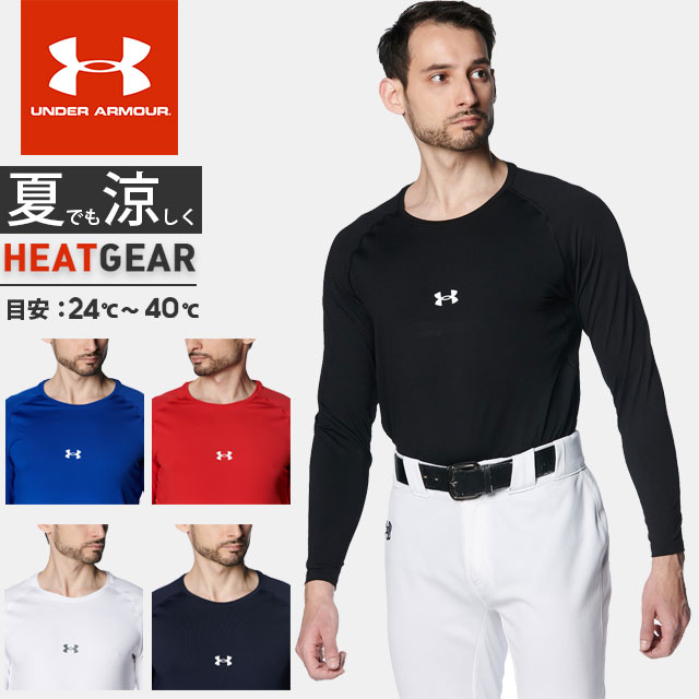 ネコポス アンダーアーマー メンズ 野球 インナー 丸首 長袖 シャツ ワンポイントロゴ UA ヒートギア コンフォート フィッティド ロングスリーブ クルーネック 高校野球対応 吸汗速乾 抗菌防臭 UVカット ストレッチ 伸縮性 トレーニング ゴルフ UNDER ARMOUR 1384731
