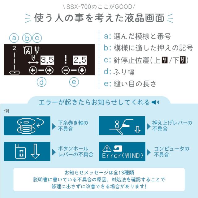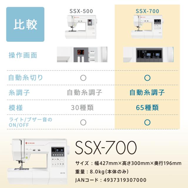 SINGER シンガー ミシン 本体 コンピューターミシン SSX-700 自動糸切り 静音設計 自動糸調子 液晶画面