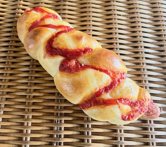 原材料:スモークポークソーセージ・強力粉・中力粉・卵・濃縮牛乳・ケチャップ・油脂・砂糖・塩/イースト(一部に乳製品・大豆・卵含む)