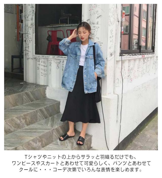 | 春秋の定番、ゆったりシルエットでおしゃれに着こなせるデニムジャケット。 少し肩の落ちたドロップショルダーでこなれ感を演出してくれます。 スカートで抜け感のある女子コーデやパンツでカジュアルに着こなすなど着回し抜群!! Tシャツやニットの上からサラッと羽織るだけでも、ワンピースやスカートとあわせて可愛らしく、パンツとあわせてクールに・・・コーデ次第でいろんな表情を楽しめます。 ゆったりとしたシルエットで気になる体型も隠してくれる優しい肌触りで心地よいフィット感でした 肌触りが良く、素肌に気持ちが良い素材。 | |