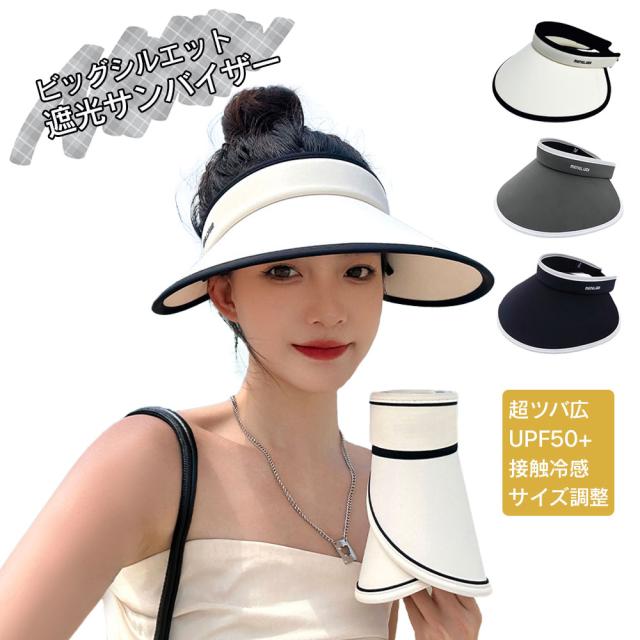 サンバイザー レディース サンハット 接触冷感 ビッグシルエット UVカットUPF+50 日除け帽子 春夏 つば広 小顔効果 サイズ調整付き 超ツバ広 飛ばない アウトドア 吸汗速乾 つば広テニス ゴルフ スポーツ 自動車 送料無料 フェザーストア