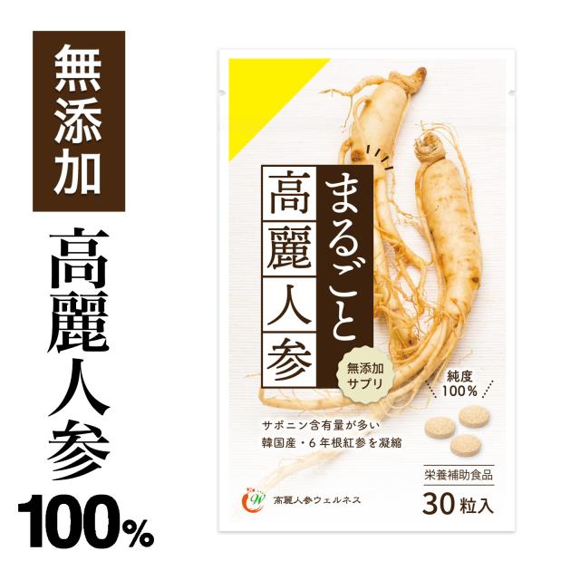 まるごと高麗人参30粒(6年根・高麗紅参粉末100%)/ 高麗人参サプリ 朝鮮人参 無添加サプリメント ginseng