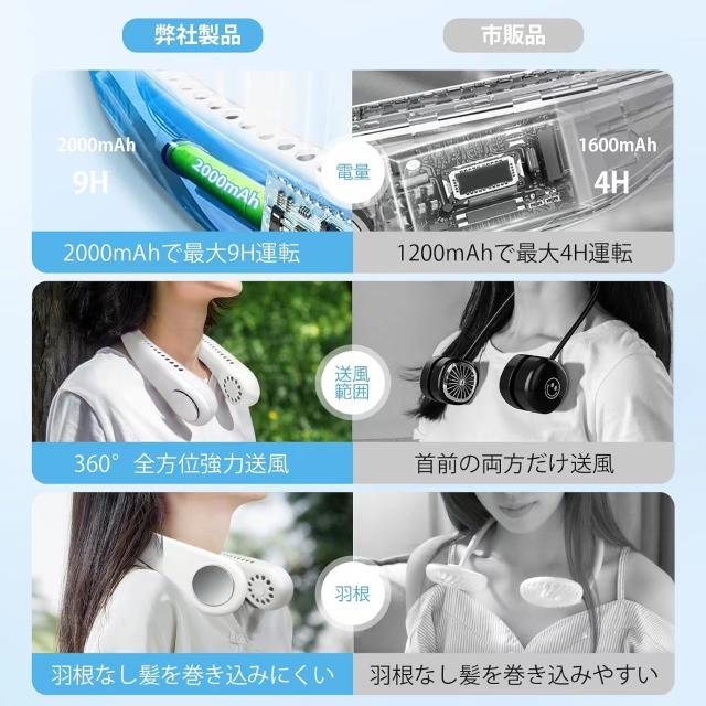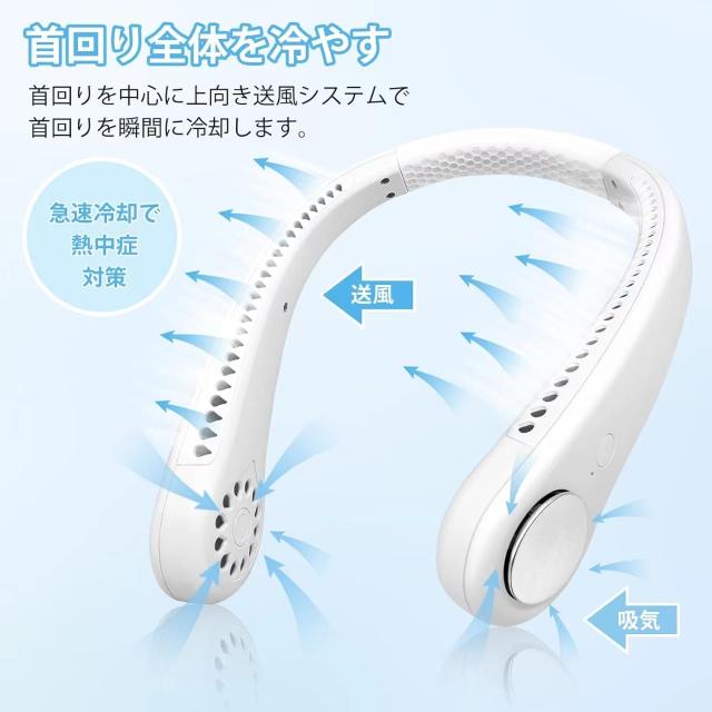 【ネックファン機軽量228g、肩への負担がなく、耐久性があります】ネッククーラー自体は軽量で風量を確保し、運動や移動時の首や肩への負担を軽減します。人間工学に基づいたネックバンド(アーム)は、手触りが柔らかく、体のサイズが異なっていても体にフィットするように希望の角度に調整できる柔らかいシリコンをベースにしています。