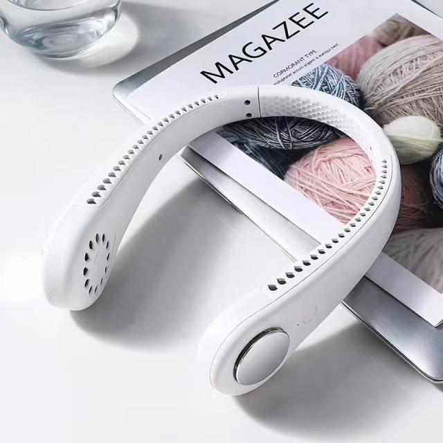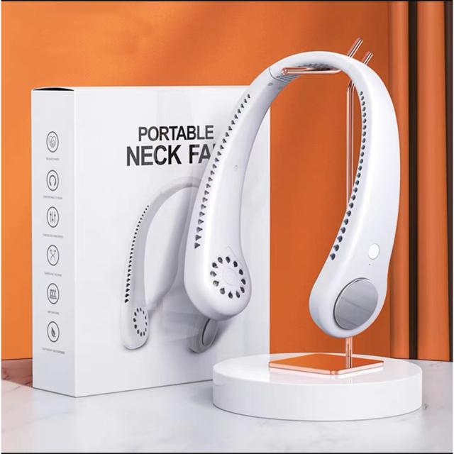 【新デザイン3Dスペースクーラー/ネックファントップモデル】首掛け扇風機 羽根なしコンデザイン、変形可能、固定可能、すべての人に適しています。首に掛けるだけで、独自に開発された上向きの風を冷やすことができます。換気システムとブローモーター、そして翼のない強風を生み出す内部のタービンファンが首と顔を立体的に冷やします。