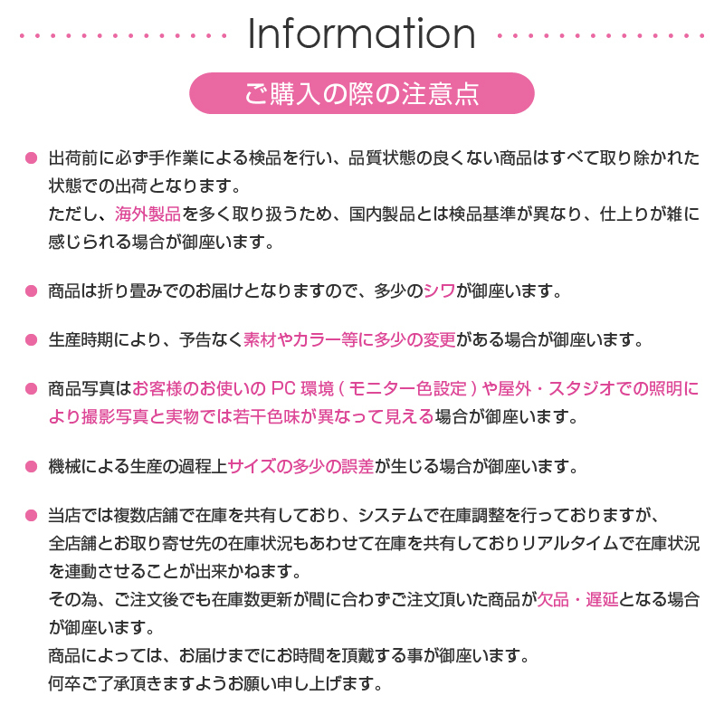 当社規定内の商品につきましてのご返品・交換は、お客様都合とさせていただきますのでご了承お願い申し上げます。
