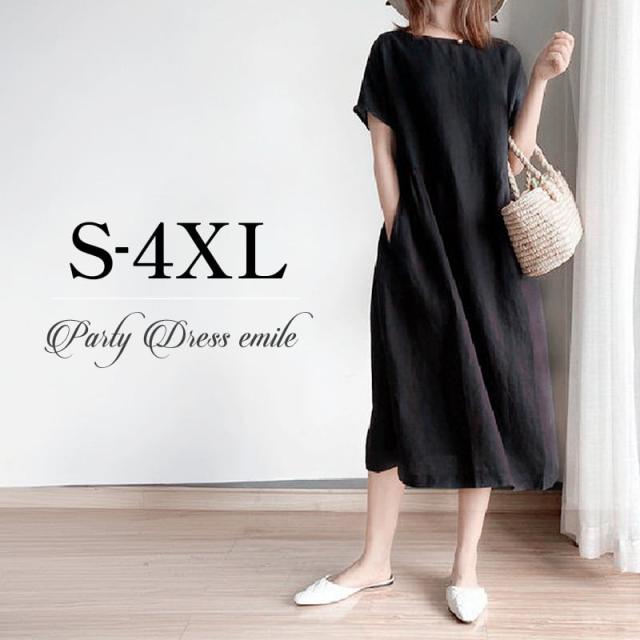 ぽっこりお腹対策、Aラインシルエットで体型カバーを叶えるカジュアルコットンリネンワンピース。
