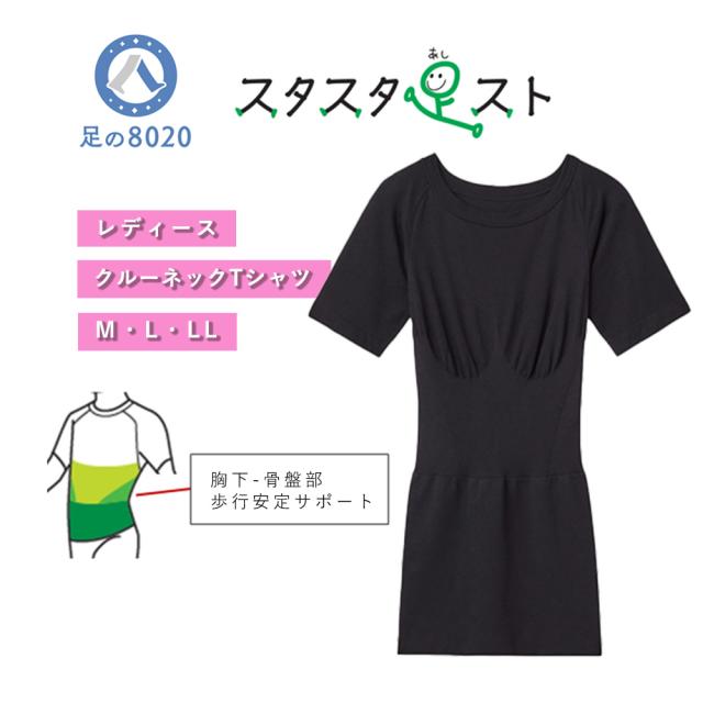 【毎日の歩行で健康に】スタスタ足スト レディース 女性 婦人 Tシャツ クルーネックTシャツ 健康 寿命 ウォーキング アシスト ヨガ 山登り