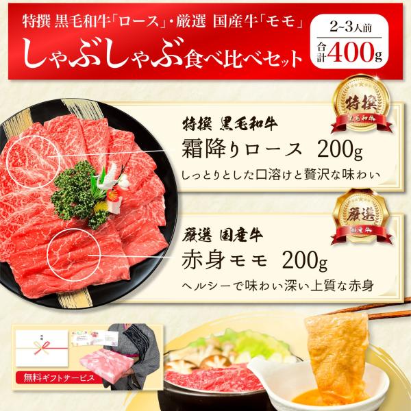 商品名: 特撰しゃぶしゃぶ・すき焼き 食べ比べセット 黒毛和牛 霜降りロース & 厳選国産牛 赤身モモ 計400g