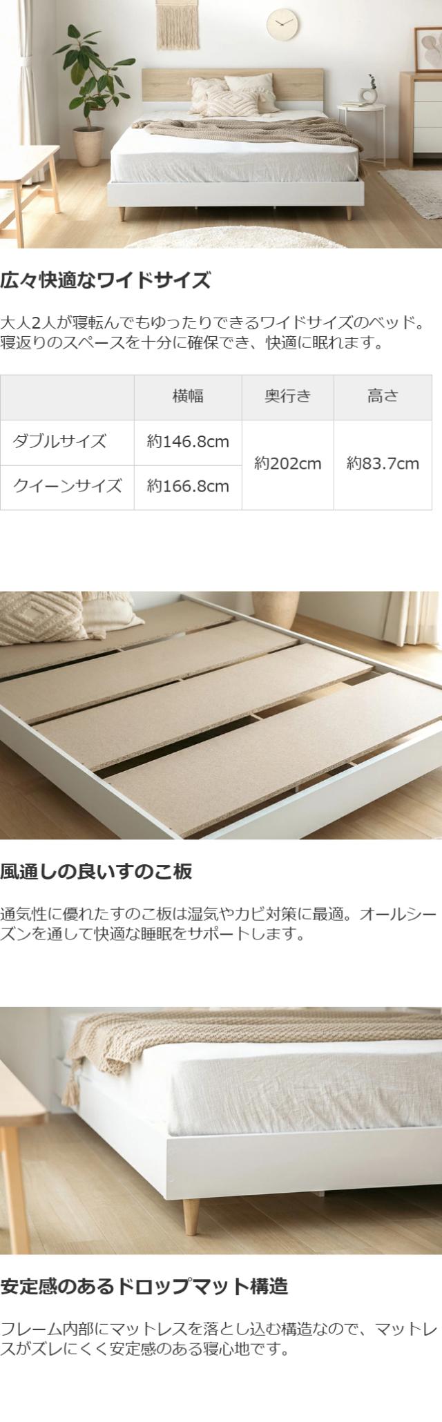 デンマーク調 ベッド ベッドフレーム 単品 ダブル 天然木脚 すのこベット ダブルベッド 木製 北欧 ホワイト おしゃれ ドロップマット 新生活