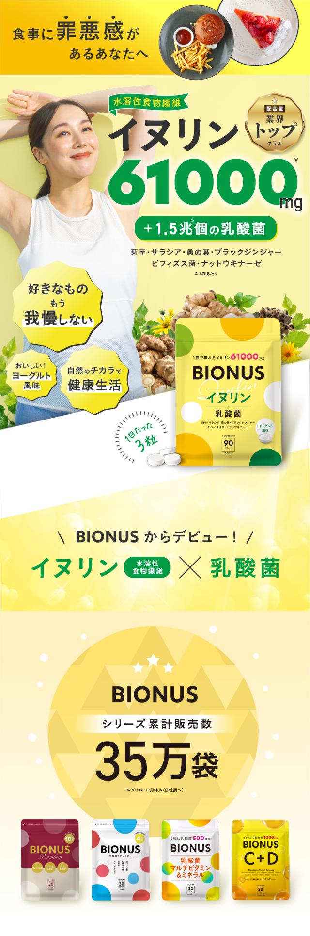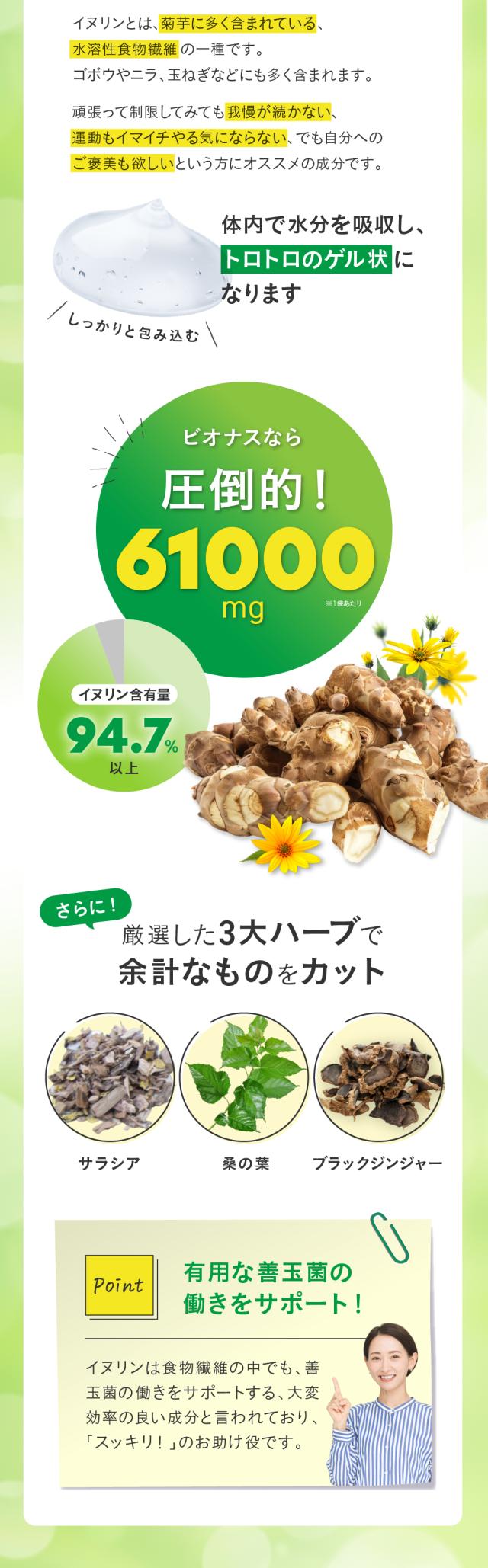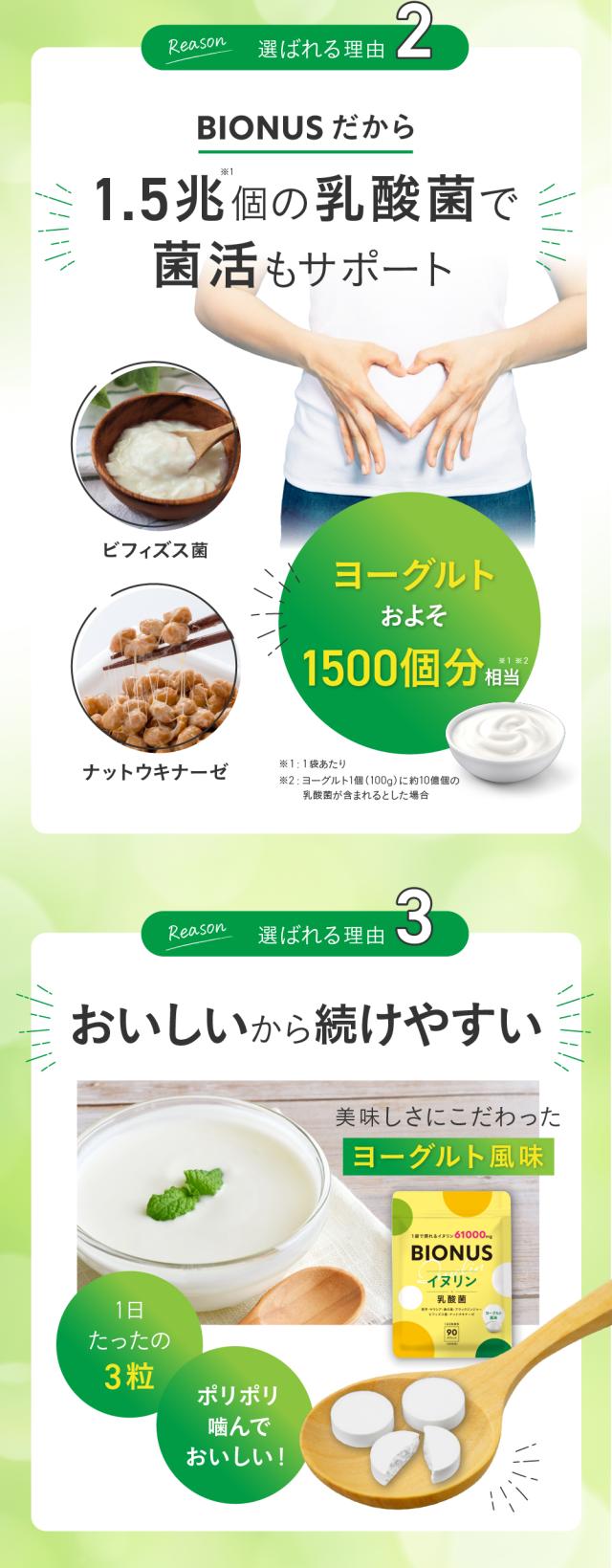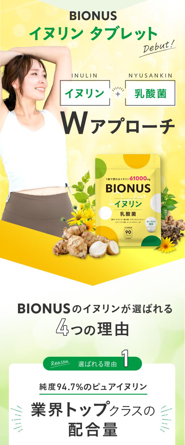 イヌリン サプリ ビオナス 61,000mg 乳酸菌入り ヨーグルト風味 タブレット 1日3粒 90粒 30日分 菊芋 ビフィズス菌 オリゴ糖 ナットウキナーゼ 桑の葉 ブラックジンジャー