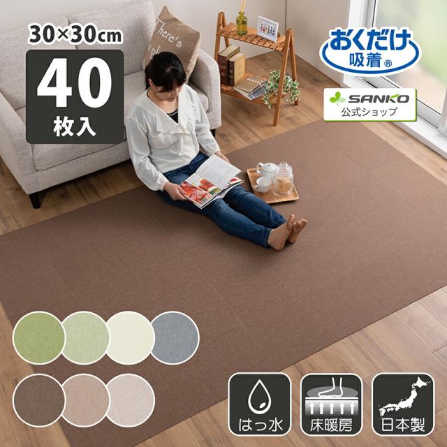 タイルカーペット ジョイントマット ズレない 洗える 撥水 バリアフリータイルマット 40枚入 30×30cm/厚み3mm サンコー 日本製