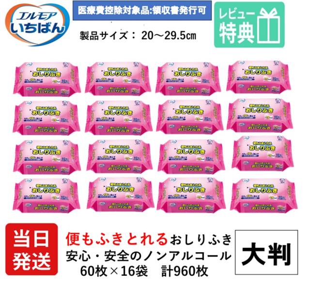 【当日発送】 エルモア ティッシュ 便もふきとれる おしりふき 保湿効果 化粧品 60枚×16袋 いちばん ウェットティッシュ お尻拭き 大判 厚手 ノンアルコール スクワランオイル 配合 排泄 衛生 洗浄 用品 介護 医療 濡れタオル らくらくおしりふき 超大判 漏れ モレ 尿 便