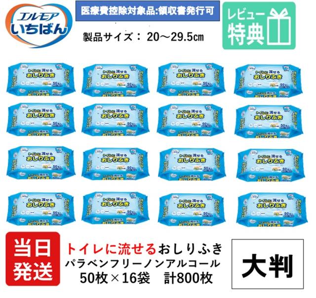 【当日発送】 エルモア ティッシュ トイレに流せるおしりふき いちばん 50枚×16袋 トイレに流せて 便利 ウェットティッシュ お尻拭き 大判 厚手 パラベンフリー ノンアルコール 無香料 排泄 衛生 洗浄 用品 介護 医療 濡れタオル らくらくおしりふき トイレに流せる 尿