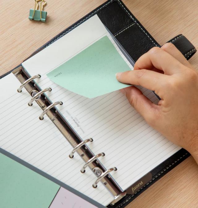 貼り替え可能な付箋セットで、ページに洗練されたタッチを加えましょう。外出先での予定や、ちょっとしたリマインダー、素早いアイデアに使えます。A5及びバイブルサイズのシステム手帳やクリップブック、A5及びA4サイズの詰め替え可能ノートブックに対応。各セットには、メモ用パッド1種類とTo Do用パッド1種類が含まれ、それぞれ25枚ずつ入っています。ミニマルスタイルの付箋ノートは、あなたのステーショナリーコレクションに追加できる万能アイテムです。どんなセットアップにもシームレスに溶け込み、すべての革製品と非革製品を引き立てます。
