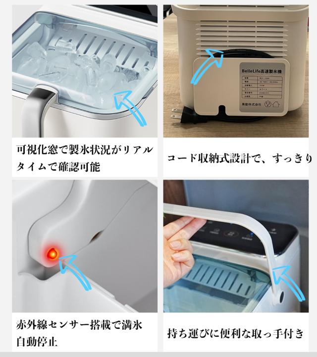 【最短6分で氷ができる!】急な来客や晩酌、パーティー・BBQの準備など、氷がすぐほしいとき、BelleLife高速製氷機があれば、水を入れてボタンを押すだけ!簡単2ステップで、あっという間に、氷を作成することができます。