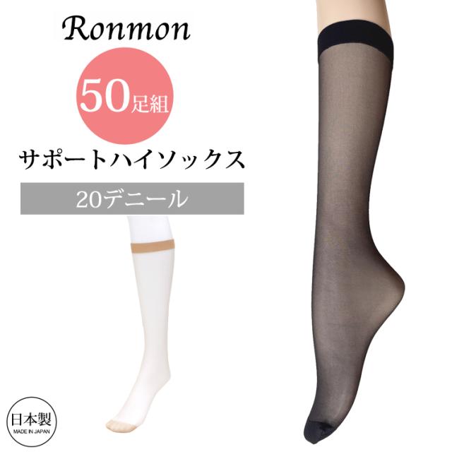 日本製 50足組 20デニール サポートハイソックス ひざ下 ストッキング レディース 女性 20D 靴下 ソックス 靴下型 靴下タイプ ひざ下 膝下 かかとなし 足が綺麗に見える ハイソックス 薄手 涼しい ベージュ OL 学生 おしゃれ 大人 きれいめ 薄手 50枚セット 送料無料 春夏 秋