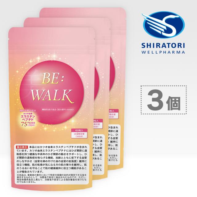 エラスチン サプリメント 60粒×3袋 90日分 日本製 BE:WALK ビーウォーク メール便 機能性表示食品 GMP認定工場製造 血管 膝 関節 肌