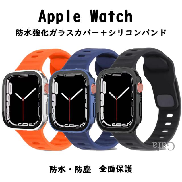 Apple watchバンドカバー アップルウォッチバンドカバーセット シリコン 防水強化ガラスカバー Apple Watch 40mm 41mm 42mm 44mm 45mm 46mm 49mm