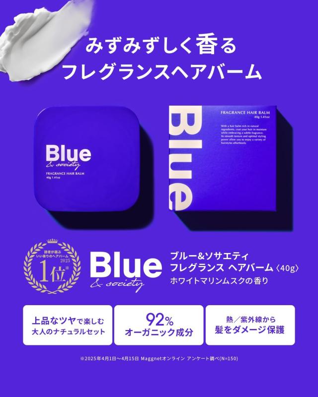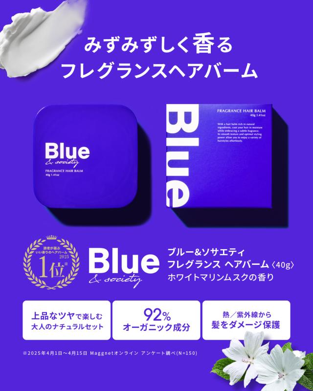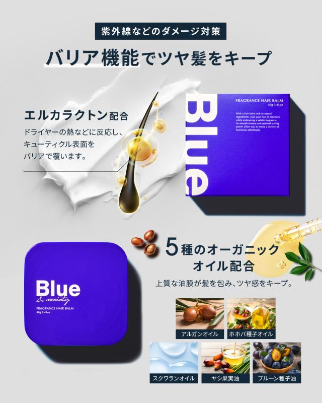 Blue フレグランス ヘアバーム 40g ホワイトマリンムスクの香り メンズ スタイリング オーガニック ヘアセット 美容室専売品