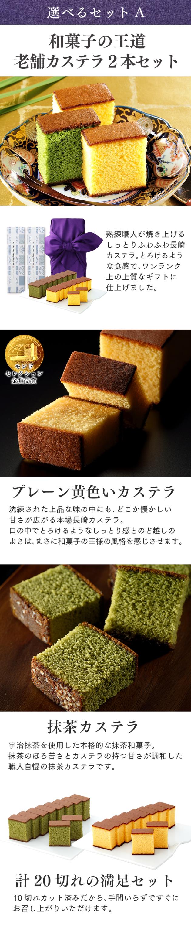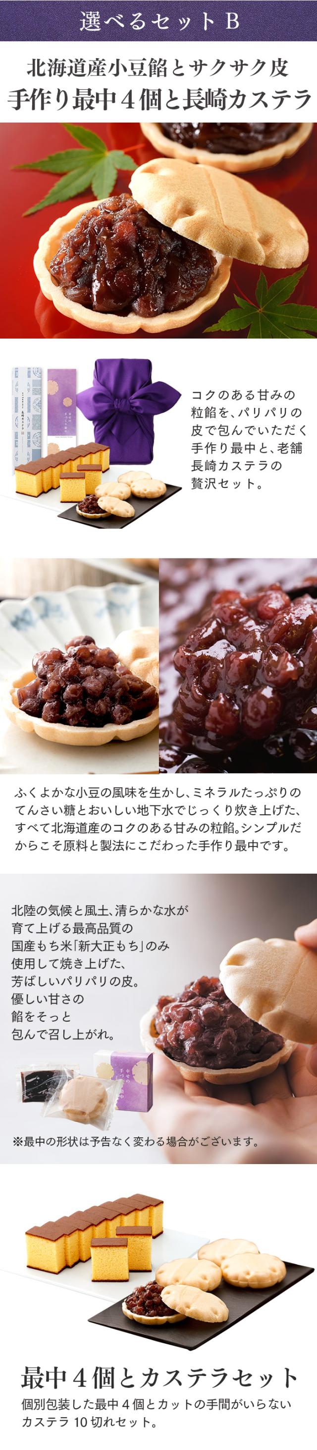 ●内容:カステラ0.6号2本 または、カステラ0.6号+最中4個