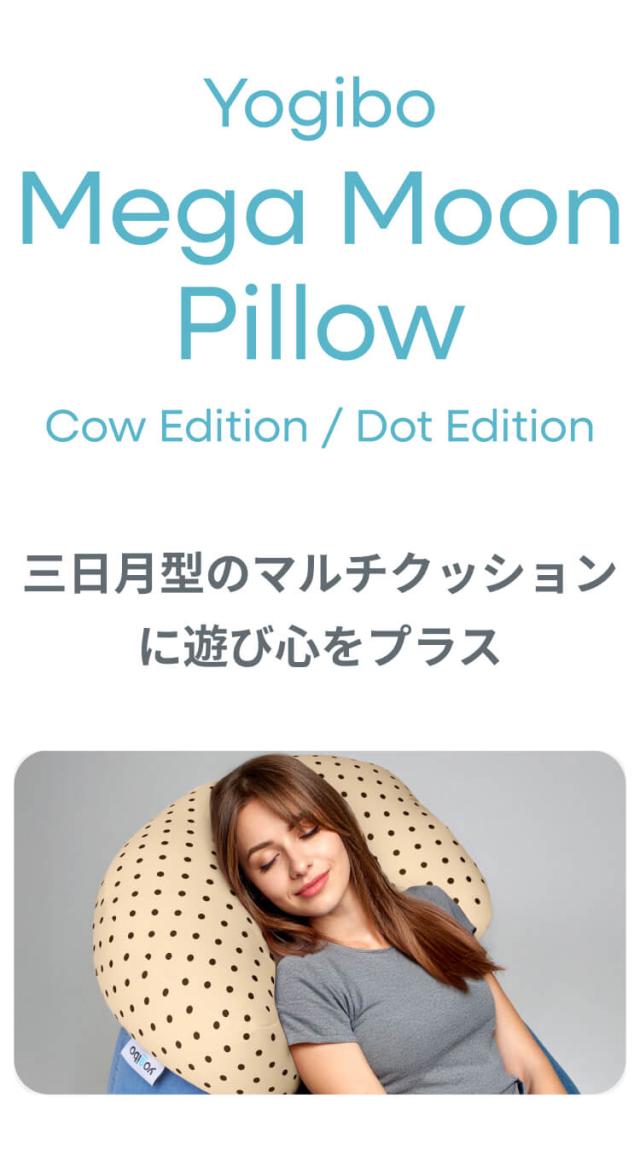 【10%OFF】 Yogibo Mega Moon Pillow Cow Edition Dot Edition ( ヨギボー メガムーンピロー ) ビーズクッション 水玉模様 牛柄 腰枕 足枕 抱き枕