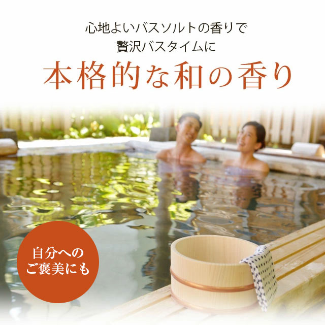 【特徴】プチギフトにおすすめの1回使い切りタイプのバスソルトです。人気のエプソムソルトに6種類の和精油で香りづけしています。