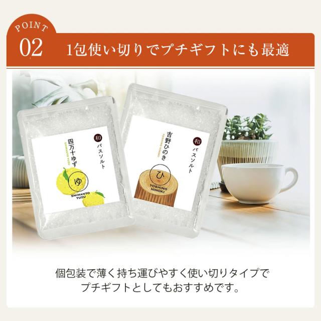 和精油バスソルト お試しセット【送料無料】 バスソルト プチギフト 和の香り ゆず ひのき 母の日 父の日 挨拶 退職 赴任 卒業式 異動 ギフト
