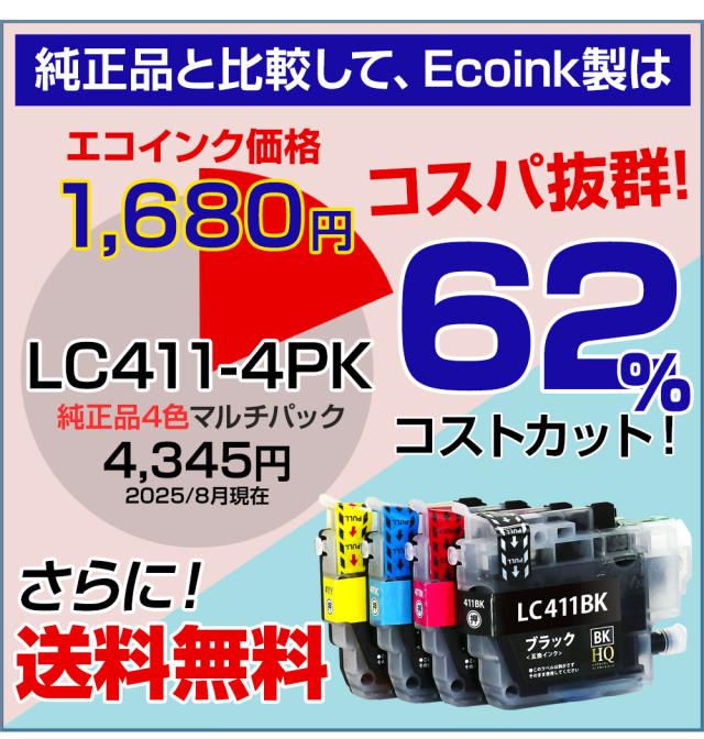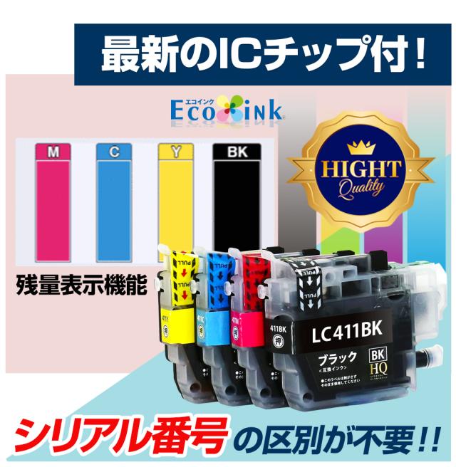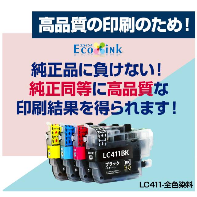 LC411-4PK 4色セット ブラザー brother【全色染料】互換インクカートリッジ 大容量 対応プリンター:DCP-J928N-W/B DCP-J926N-W/B DCP-J915N DCP-J914N DCP-J528N DCP-J526N DCP-J1800N MFC-J939DN/DWN MFC-J905N MFC-J904N