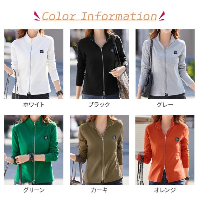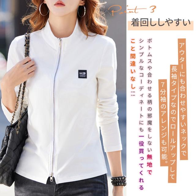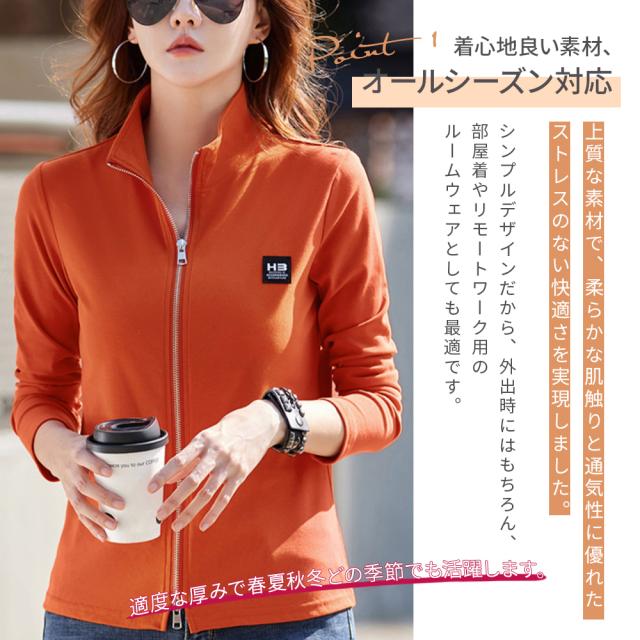 長袖tシャツ レディース Tシャツ長袖 フルジップ ジップアップ 綿トップス カジュアル 春服 秋服 テニスウェア ゴルフシャツ スポーツウェア ランニング トップス