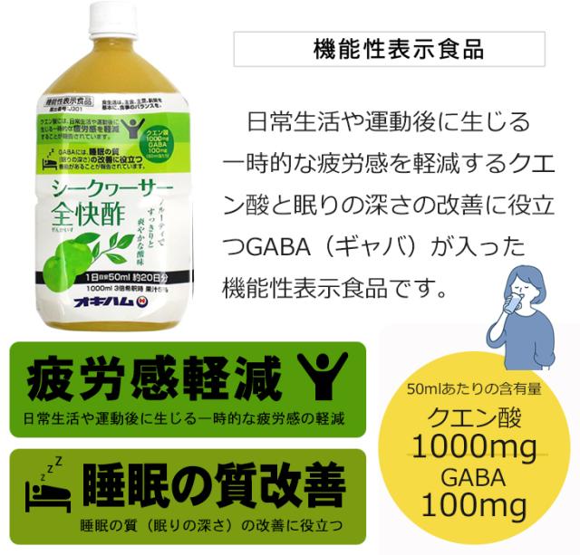 疲労感軽減 睡眠 ドリンク シークヮーサー全快酢 500ml(約10日分) オキハム ギャバ GABA シークワーサー クエン酸 甘さ控えめ ペットボトル 安眠