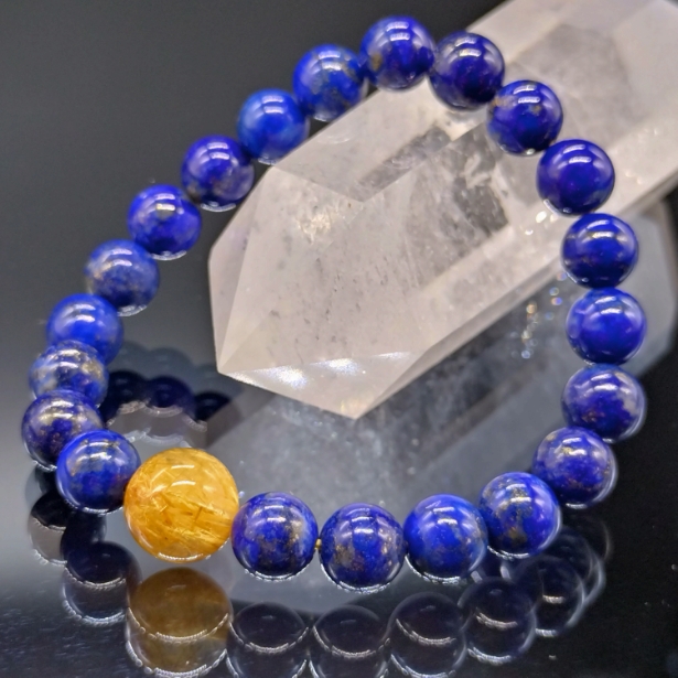 持ち主に【強運・幸運】を引き寄せるラピスラズリと、【金運・成功・財運】を引き寄せるゴールドタイチンルチルクォーツ。