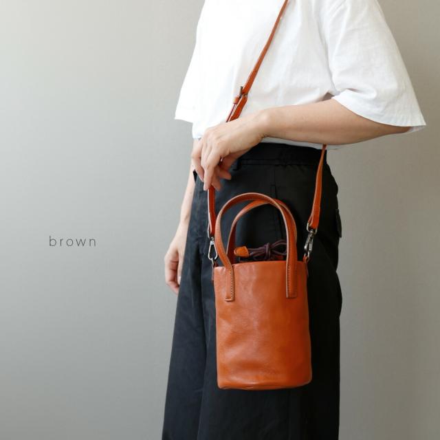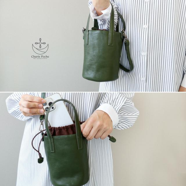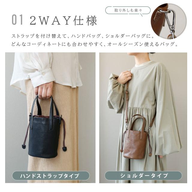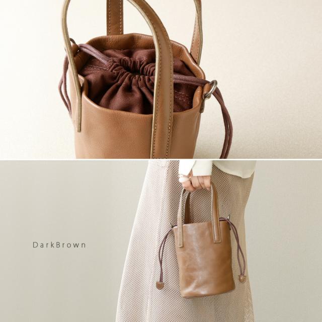 美しい筒型シルエットが印象的な本革バケツバッグ。無駄のないフォルムに、やわらかく上質な革の質感が映える一品です。開口部は、巾着のようにきゅっと絞って閉じる仕様。荷物をしっかりと包みこみながら、軽やかな印象に。開け閉めもスムーズで、見た目のアクセントにもなっています。