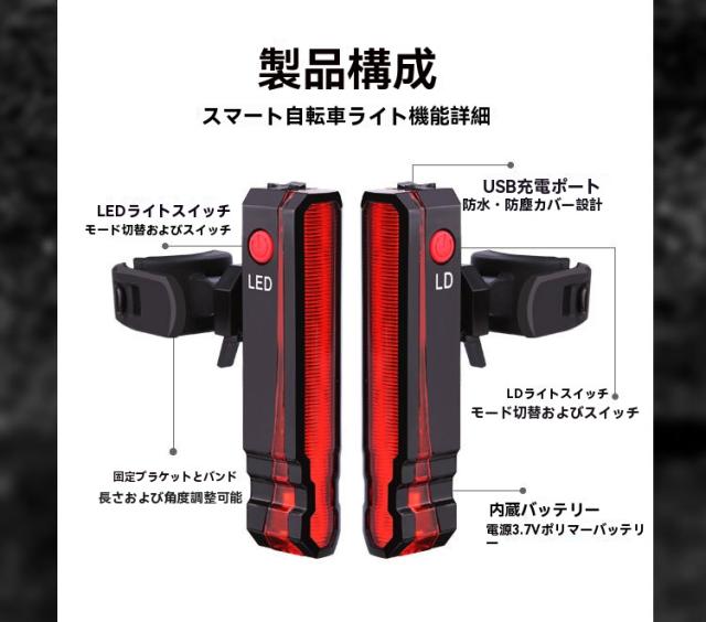 自転車ランプマウンテンバイクテールランプ夜間usb充電点滅led夜騎乗警告フラッシュ自転車後灯ミニ携帯高亮クール灯騎乗装備防水緊急点滅灯ヘッドライト国境を越えた起爆部品